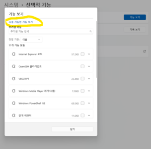 큰 차이는 없습니다. 다만 메뉴 위치가 조금 다르게 보일 수 있습니다. 최근 윈도우 11에서는 시스템 > 선택적 기능 쪽에서 찾는 경우가 많습니다.